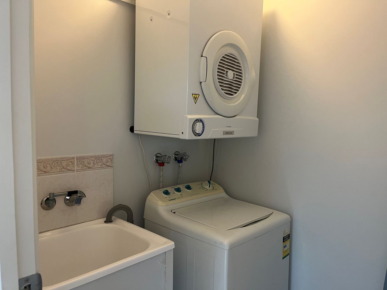 Also on the ground floor, there is a laundry boasting a washing machine and dryer. Separate toilet, powder room, as well as a single lock up carport.