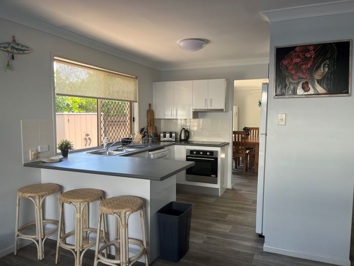 1 This family beach getaway is only minutes’ walk from the beach and main street. You can walk down the street and grab an icecream or a coffee, or head down the beach and throw a line in or have a swim. No need for the car, you can walk to everything from here with ease.
