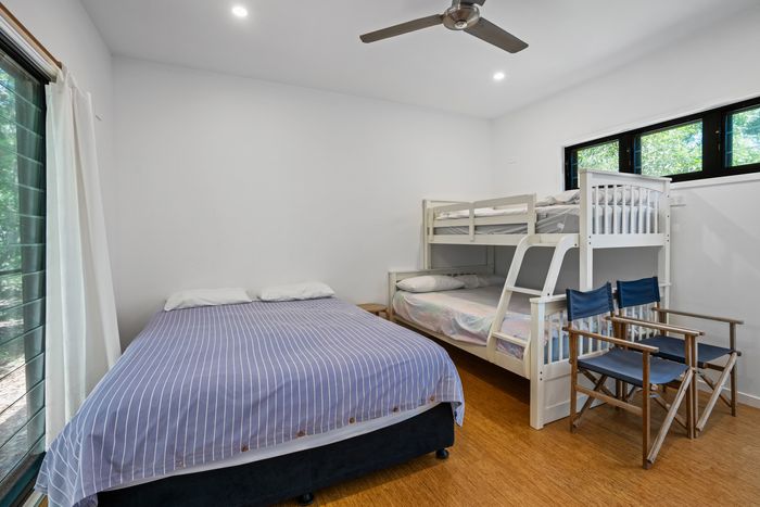 Two of the three bedrooms are situated near the front of the house and all three queen size beds boast a comfortable, top-quality Sealy Posturepedic mattress. The bunk room at the rear of the property features a queen size bed and double over single bunk.