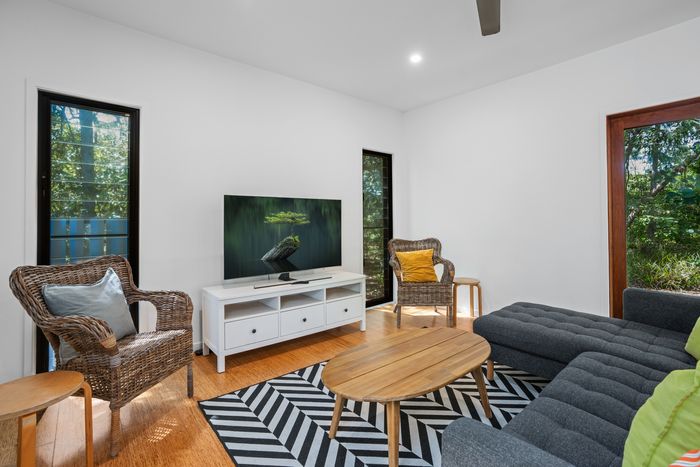 Harmonious and simple fusion design inspired by Japanese themes, relaxed pavilion living and the iconic Aussie beach-shack. Very comfortable and private accommodation.