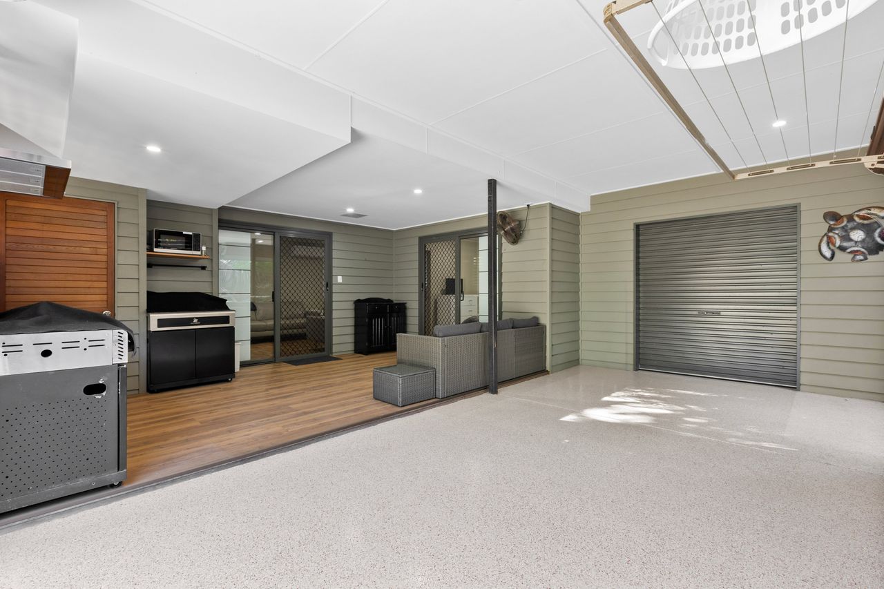 - Spend afternoons on the expansive outdoor deck that will effortlessly entertain guests for hours amongst the canopy of established trees affording you access to ocean breezes