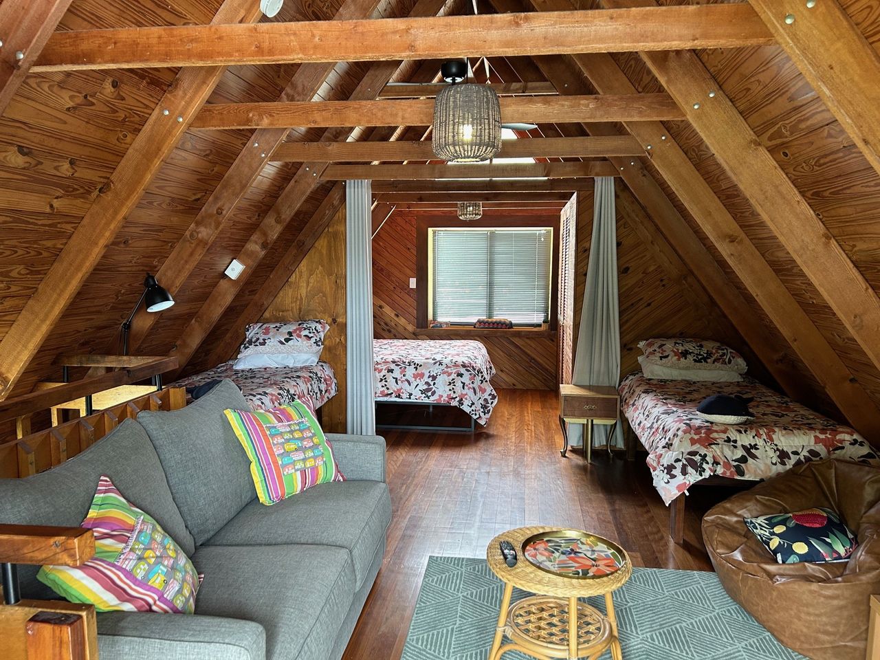 This unique Chalet is a very special place. The A-frame architecture gives a feeling of being somewhere quite out of the ordinary. The ambience is magical with natural light filtering in to illuminate the beautiful, exposed timber beams and rafters. This creates a sleek, elegant and cozy living space.