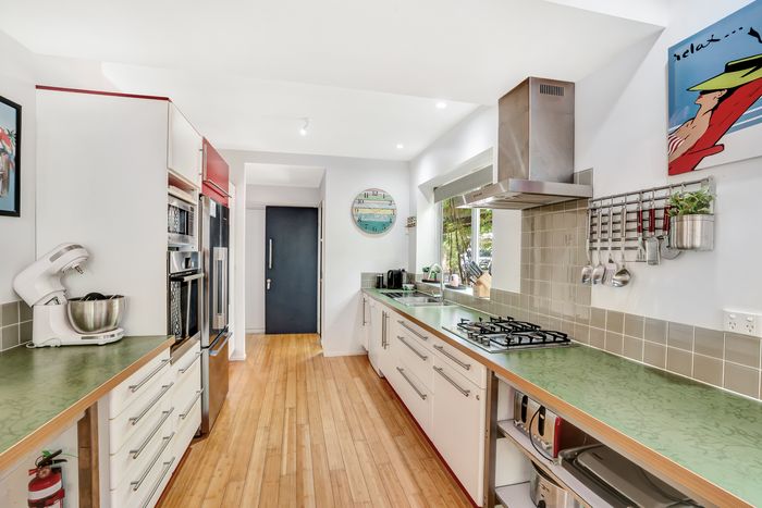 The large, functional, European kitchen boasts stainless steel appliances and flows effortlessly into the dining area. There are gorgeous vistas from the ample windows out to the surrounding bush and landscaped gardens.