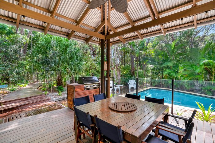 Multiple levels of back decking lead straight to a bush pathway, which in turn vanishes through the trees, only to reappear 300m later at Rainbow Beach. The backyard is fully fenced and you can bring your family pet along for a beach side holiday as well (outdoors only please).