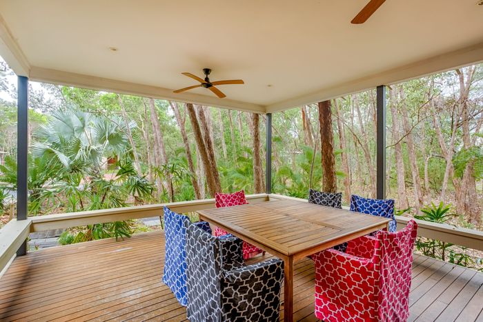 Gorgeous outdoor living space with ceiling fans, overlooking the private, inground pool. Relax and unwind on either of the large decks one at the front and one at the back. The house is situated on a quiet street and provides you with privacy, peace and quiet.