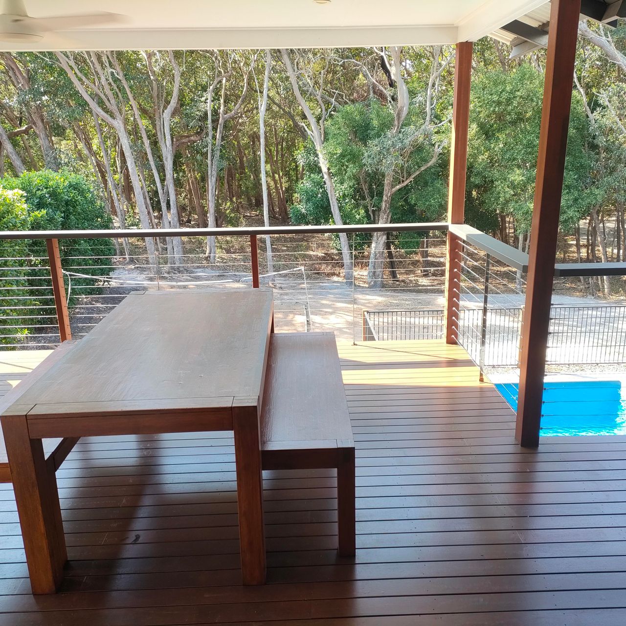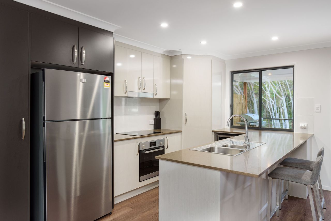 This spacious, well-appointed, split-level holiday home offers you all the style and comfort you need to enjoy your Rainbow Beach getaway. Unwind with a coffee on the balcony overlooking the pool, volleyball court and the peaceful bush land backdrop.