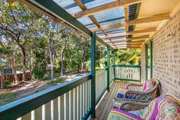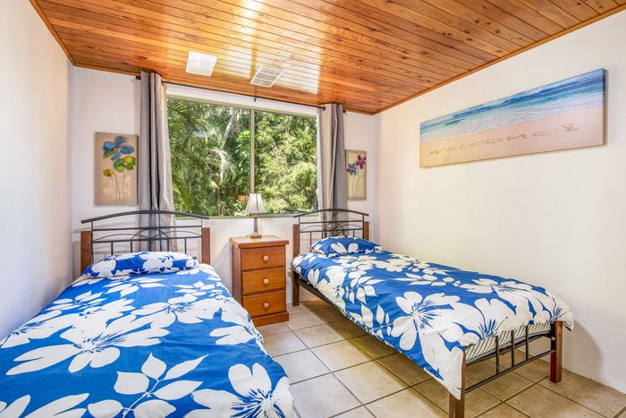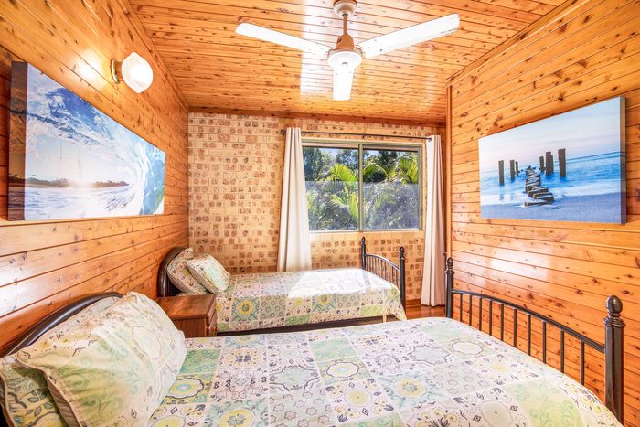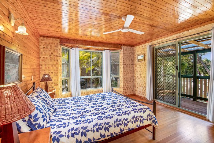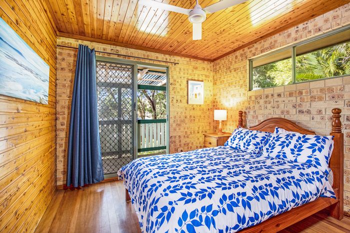 Located at leafy Rainbow Shores, the beach house is only a 200 metre walk to the surf beach with the bush track accessible from your back yard.