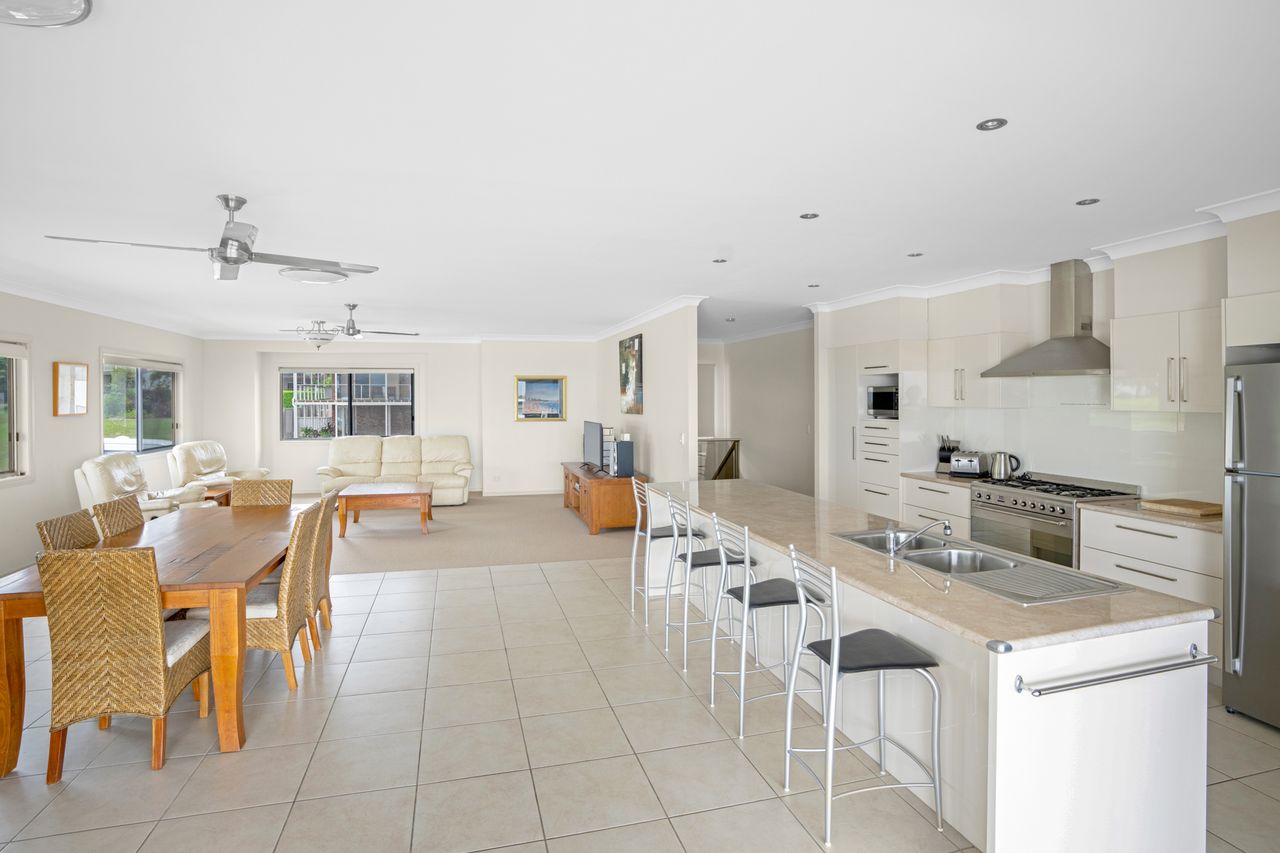 - Kitchen with island bench, dishwasher, microwave and six burner gas cooktop