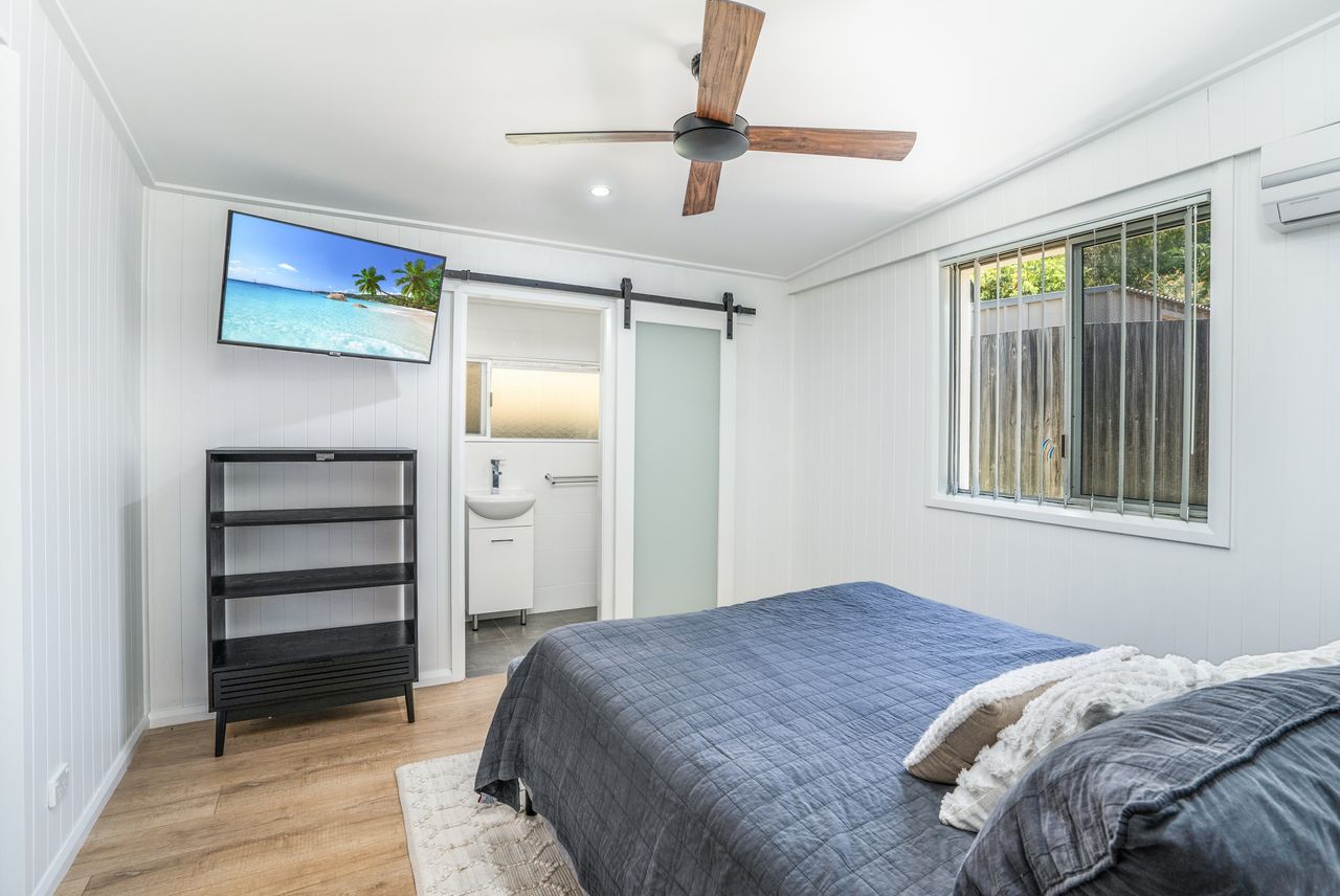 1 Situated within an easy 10 minutes’ walk to the beach, this home is the perfect beach house with renovated bathrooms and kitchen. Air-conditioned living area, ceiling fans throughout and an outdoor fireplace. Pets welcome, outdoors only please.