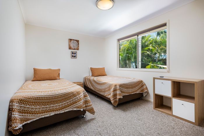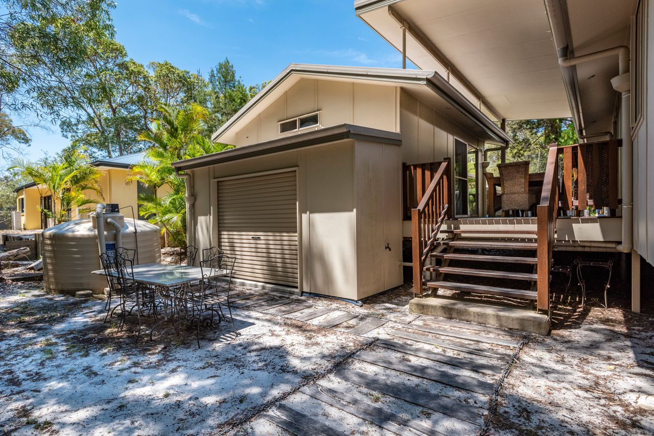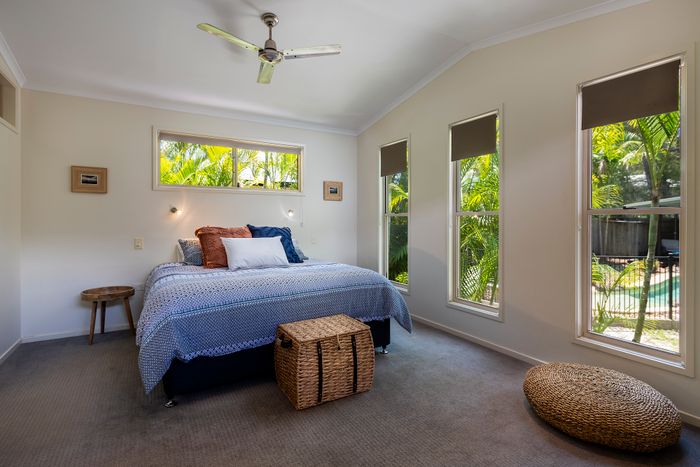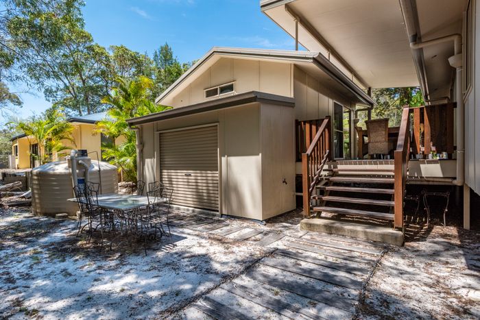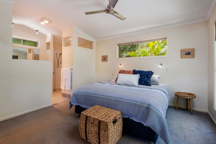 This gorgeous, pavilion-style home was designed to take full advantage of the beachside location and coastal lifestyle. Only 350 metres to the pristine Rainbow Beach via a leafy road and bush track. This property is perfect for the family with the master bedroom/parents retreat separate from the main house, offering a walk-in robe and private ensuite.