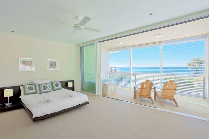 Downstairs boasts the master bedroom which also leads out onto the beach facing balcony where you can enjoy relaxing in the large spa, sipping your wine whilst enjoying the breath taking views.