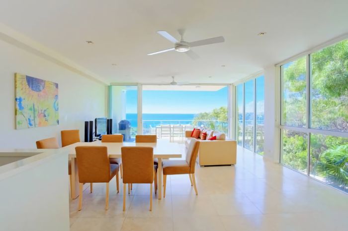 Situated within metres of the stunning surf beach with panoramic views across to Fraser Island and south to Double Island Point, you will feel like you are on top of the world in this stylish and modern holiday apartment.