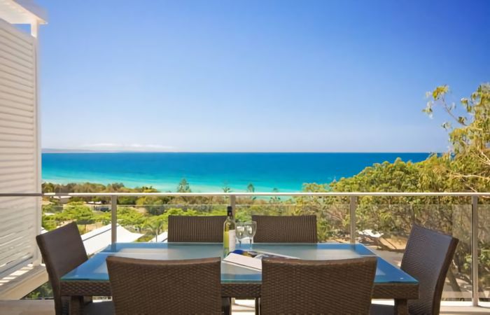 This stunning apartment has the most spectacular views of the pristine Rainbow Beach coastline from both levels. The large, open plan living area flows out onto the balcony through huge glass bi fold doors - perfect for relaxing on at any time of the day.