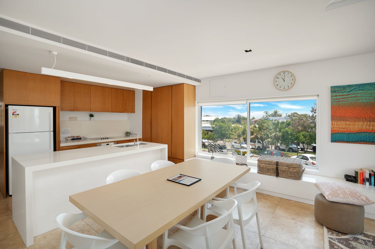 Gorgeous, ocean facing apartment within Plantation, located within the heart of Rainbow Beach. Open plan living and light-filled spaces, this beautiful second floor apartment is a beachside retreat. The Resort offers the best of everything and allows you the opportunity to enjoy the exclusivity of your surroundings. Study area as well.